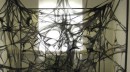 Ein Achtkubikmeterwürfel füllt die Amtsstube fast vollständig, seine Stahlleisten mit einer Netzstruktur aus schwarzen Strumpfhosen bespannt bilden darin einen zweiten Raum. Die Bochumer Künstlerin Monika Ortmann hinterfragt so die Position des Einzelnen im Raum und die damit verbundene eigenen Bewegungsfreiheiten. „database“ heißt die Rauminstallation, eine Etage höher sind weitere Nylon-Systeme der weltweit aktiven Künstlerin zu erkunden.