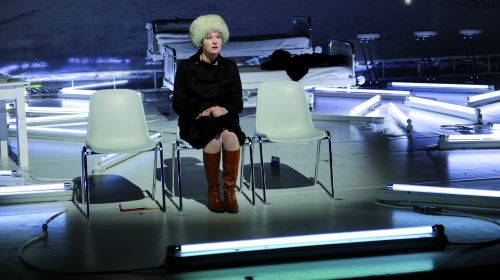 Intendant Anselm Weber inszeniert die Uraufführung von Biljana Srbljanovićs neuem Stück „Das Leben ist kein Fahrrad" an den Bochumer Kammerspielen. Ein Stück, das die Serbin für ihn geschrieben hat, hervorgegangen aus einer Rede über neue Identitäten auf dem Balkan, die sie vor fast zwei Jahren am Wiener Burgtheater gehalten hat. Ein Text, der in erster Linie von Vätern erzählt, von denen, die alt sind, und denen, die nie da sind. Im Wohnzimmer auf der Bühne rechts tummeln sich die Dicke (Kristina-Maria Peters) und Ropac (Jürgen Hartmann), der ziemlich nett, aber undurchsichtig und ständig betrunken die Vaterrolle bei ihr übernommen hat. Auf der linken Seite das Büro der namenlosen Politikerin (Anke Zillich), deren Sohn nach seiner Scheidung wieder bei ihr eingezogen ist. Diese drei Örtlichkeiten werden von Srbljanović verwoben durch die Personen, die dort agieren und die alle irgendwann im Laufe des Stücks verknüpft werden, denn das hat Ursachen und Wirkungen, allerdings nur im zwischenmenschlichen Seelenleben, das seltsam tot wirkt. Das unterstützen auch die auf dem Boden liegenden Neonröhren, die ihr kaltes Licht nach oben abstrahlen und damit wohl eine fast schattenlose Mimik generieren wollen.