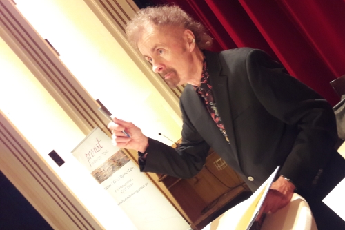 So offen, wie Boyle diese wirtschaftlichen Überlegungen anspricht, plaudert er auch über eigene – frühere – Drogenerfahrungen, über Timothy Leary und Donald Trump, über Jazz und Rock. Das mag auch an der wunderbar unaufgeregten Interviewführung durch Margarete von Schwarzkopf liegen. Die Literaturkritikerin und Journalistin trifft nicht zum ersten Mal auf Boyle und die beiden harmonieren nicht zuletzt in einem ähnlichen Sinn für Humor – und gemeinsamen irischen Wurzeln – miteinander. Nur sehr sporadisch übersetzt von Schwarzkopf einzelne Statements Boyles, zumeist sehr frei und gerne bereits garniert mit eigenen Gedanken. Hierdurch bleibt das Gespräch stets im Fluss, es entstehen keine Verzögerungen durch Übersetzungspausen. Allerdings kann man die feinen Nuancen des Gesprächs nur mit guten Englischkenntnissen genießen. Und wenn man diese beim Publikum voraussetzt, stellt sich die Frage, warum im Lesungsblock der deutschsprachige Part (vorgetragen von Gregor Henze, der kürzlich noch als Vogelscheuche in „Der Zauberer von Oz“ am Essener Grillo-Theater zu erleben war) einen weit größeren Anteil hatte als die Lesung durch den Autor selbst. Doch was soll’s: Boyle und Henze führen im Wechsel ein in das Szenario des Romans, begleiten die Hauptfiguren Fitz und Joanie zu ihrer ersten „Session“ beim Uni-Professor und späteren LSD-Guru Timothy Leary. Zu hören bekommt man an diesem Abend nur eine Passage ganz zu Beginn des Romans, in der zwar der Ton des Buches deutlich wird, die Figurenkonstellation und die aufkommenden Konflikte sich jedoch erst langsam abzuzeichnen beginnen. Dabei hätte es sich gelohnt, Kostproben aus unterschiedlichen Abschnitten des Romans zu erhalten. So wechselt im Laufe der Geschichte die Erzählperspektive von Fitz zu Joanie und wieder zurück, aus dem anfänglich zögerlichen Wunsch, durch die Nähe zu Leary mit dem Studium vorwärts zu kommen, entwickelt sich eine Kommune mit sektenhaften Zügen.