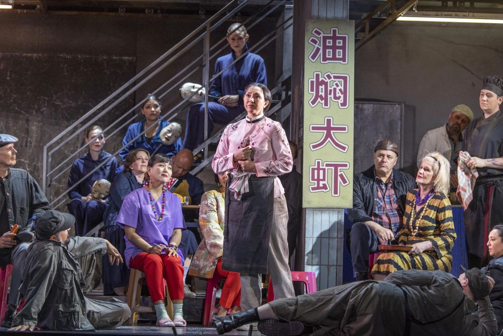 Adriana Altaras macht daraus eine unentschieden zwischen Bildern des modernen China und lustvoll klischeehaften Chinoiserien angesiedelte Inszenierung. Auf der Bühne Christoph Schubigers wechselt die Unterschicht-Garküche mit den Sitzreihen des Volkskongresses unter Hammer und Sichel. Den Kaiser steckt Kostümbildnerin Nina Lepilina in einen roten Anzug, während vier Mandarine Thermojacken übers altchinesische Gewand ziehen. Entschiedener packt Hermes Helfricht die Musik an: Da klingt zu Beginn die U-Musik der Zwanziger an, aber der Eingangschor tönt richtig modern; später hört man Franckensteins Lehrer Ludwig Thuille in raffiniert gewürzten Harmonien. Das Bonner Ensemble kann sich hören lassen: Mirko Roschkowski ist ein charismatischer Dichter, Anna Princeva bemüht sich um entspannte Lyrismen für ihr melancholisches, auf Li Bo zurückgehendes Lied vom Kormoran. Eine exotische Trouvaille, die wohl mehr über die europäische Bohème als über das alte China erzählt.