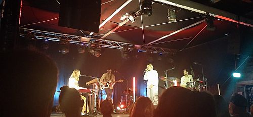 Im locker-abgerockten Ambiente des Junkyard Dortmund ist eine minimalistische „Lichtshow“ aus einer Handvoll Leuchtstäben eingerichtet und mehr braucht es auch nicht, denn Lina Maly leuchtet an diesem Abend von innen heraus. Ihr und ihrer Band kann man deutlich ansehen, wie glücklich sie dieser Auftritt vor einem fast ausverkauften Saal nach langer Zwangspause macht. Musikalisch changiert der Abend zwischen intim-melancholisch und durchaus auch tanzbar – bis hin zu gelegentlichen Ausbrüchen, die man rockig-energiegeladen nennen darf. Eine verlässliche Bank ist dabei Linas Begleitband, bestehend aus Gitarre, Schlagzeug und Keyboard. Das Trio bildet ein solides Fundament für Lina Malys sanften Gesang. Maly singt deutsch – vom Verliebtsein, von Sehnsüchten und Trennungen. Dabei sind ihre Texte frei von den Versatzstücken aus den Schubladen, in die so viele deutsche Songwriter aktuell greifen. Ihre Texte sind sehr persönlich, wirken authentisch und bewegen sich dabei fernab der Kitschgrenze.