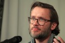 Ein Journalist, ein Soldat und eine Hebamme fahren mit einem Tank durch einen Schneesturm: Das ist die Ausgangskonstellation von Rehs neuem Roman, aus dem er in der Zentralbibliothek las.