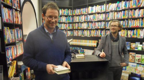„Gegen die Zeit“ lotet im historischen Rückblick die ethischen Grenzen technologischer Systemsteuerung aus und stellt die Frage, welchen Preis wir hierfür bezahlen müssten, falls sich ein totalitäres Regime einmal der (globalen) postrevolutionären digitalen Infrastruktur bedienen würde. 2013 reiste Sascha Reh selbst nach Chile und sprach mit ehemaligen CORFO-Teammitgliedern, aus deren Sicht dem Projekt trotz allem auch im Rückblick noch die politische Aufbruchsstimmung der Allende-Zeit anhaftet. Mit angenehmer Zurückhaltung kommentiert der zudem als Familientherapeut arbeitende Autor sein eigenes Werk: „Das Politische kommt hoffentlich zeitgemäß daher“, beantwortet er nach der Lesung eine Publikumsfrage. Das tut es zweifellos, und auf jeden Fall hätte die Veranstaltung ein noch größeres Publikum verdient gehabt. Immerhin fanden sich an „Weiberfastnacht“ mehr als 25 Gäste in der Buchhandlung Janssen ein.