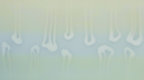 Die Arbeiten von Udo Nöger bestehen aus mehreren Leinwänden, die in einem Kasten hintereinander gestaffelt sind, wobei Nöger selbst von Tafelbildern spricht. Die erste, äußere Gewebeschicht ist mit Paraffinöl behandelt, so dass sie transparent wird. Die Malhandlungen finden auf ihrer Rückseite oder auf den tieferen Leinwänden statt. Oder bestimmte Formen sind dort ausgeschnitten und dadurch sichtbar. Was wir sehen, ist die Anwesenheit von Licht in einer gelenkten Verdichtung.