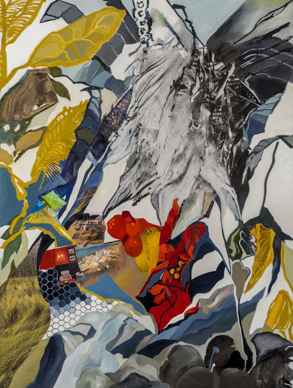 Der Wechsel der Betrachtung aus dem Abstand bis unmittelbar vor die teils zwei- oder dreiteiligen Leinwände gibt inmitten der ausgreifenden oder fließenden Farbbewegungen collagierte Fotografien und Postkarten zu erkennen. Die Collage forciert den Blick in tiefere Schichten, lässt in das Farbgeschehen eindringen, wird von Strudeln umfangen, wirkt einmal harmonisch, dann bewusst appliziert und als Störfaktor. Nachvollziehbar wird, wie sich das Bild in seinen Einzelheiten aufbaut, zusammenfügt und dabei ordnet. Die Bilder verweisen autobiographisch auf das private Leben, aber sie legen genauso gesellschaftskritische Fährten, ermuntern, sich engagiert einzumischen und verdeutlichen, welche Rolle die Natur spielt: Mally Khorasantchis Malerei ist eine Entdeckung.