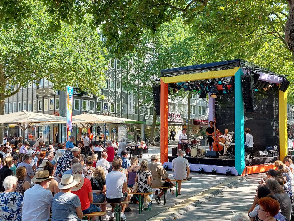 Zwei Tage herrscht in Dortmund der Ausnahmezustand. Nee, keine schwarzgelbe Neusaison-Selbstbeweihräucherung am Borsigplatz, sondern Kultur für Alle, „umsonst und draußen“, wie es der Pressetext betont. Deshalb ein Stoßgebet schon jetzt gen Himmel, dessen Pforten auch nach den Ferien geschlossen bleiben mögen. Das diesjährige Micro!Festival wird wieder ein fröhliches Dauergewitter aus Weltmusik, Straßentheater und Kleinkunst von 28 Ensembles aus zwölf Ländern. Alt und Jung aus der ganzen Rhein-Ruhr-Region (plus Sauerland, versteht sich) grooven auf den Straßen der Stadt. Wem es zu viel wird, wer eher Entschleunigung sucht, der möge die Telefonzelle an der Theaterfläche an der Reinoldikirche suchen und in die interaktive Installation „Schöner Warten“ des Künstlerduos Foolpool eintauchen. Ne Nummer gewählt, dann hört der Mensch etwas über die Geschichte der Warteschleife, ein Medley von Wartesongs (denken wir nur an The Velvet Underground) oder er verschwendet einfach mal Zeit.