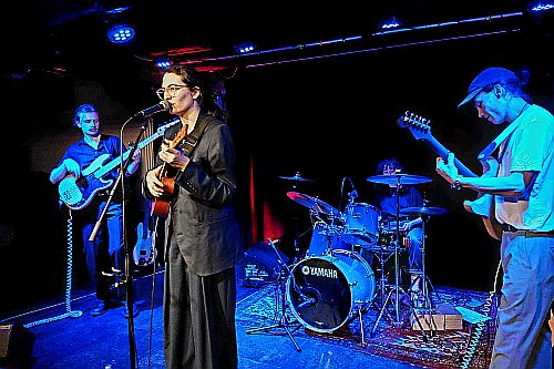 Recht früh im Set streut Richman den einzigen Coversong des Abends ein. Mit „50 Ways to Leave Your Lover“ von Paul Simon taut sie das vorwiegend nicht mehr ganz so junge, aber durchaus begeisterungsfähige Recklinghäuser Publikum auf. Die Stehtische werden zwar noch festgehalten, doch an den Rändern zeigt sich Bewegung. Nach ungefähr der Hälfte des Sets wird Mina Richman ernster, die anderen Musiker haben die Bühne kurz verlassen und sie widmet „Baba said“ nicht nur den Frauen, sondern allen regimekritischen Menschen im Iran. Sie habe sich geschworen, erzählt sie, den Song so lange zu spielen, bis sich die Lage im Heimatland ihres Vaters bessert und man merkt ihr an, dass es sich um keine leicht dahergesagte Floskel handelt. Eindrucksvoll zeigt Richman, dass ein energischer Protestsong auch mit Ukulele funktioniert. Es bleibt hoch emotional, als die anderen Musiker zurückkehren und mit „Grown up“ der Titelsong des Debütalbums folgt, in dem Richman Erinnerungen an Urlaube im Iran verarbeitet – sehr privilegierte Blicke in eine Gesellschaft, in der sie letztlich nicht leben musste. Den mit Rap-Passagen arbeitenden Song lässt sie fast übergangslos in „Too young“ münden, der sich musikalisch höchst emotional entlädt. Hier schlagen Richman und Band einen weitaus raueren Ton ein als in der Albumversion.