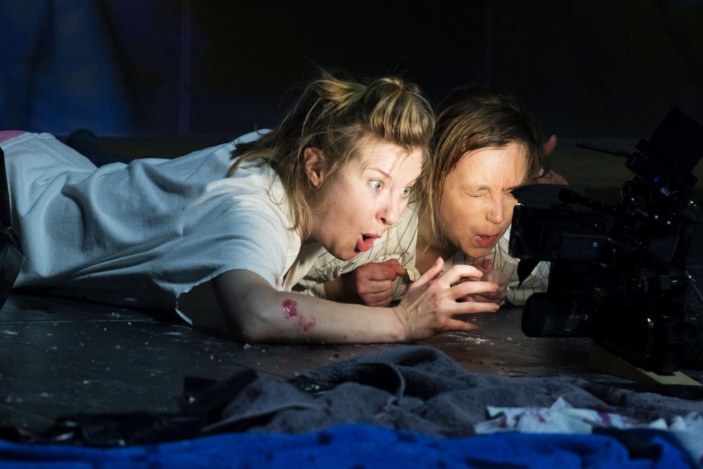 Man könnte denken, das Chaos sei für Cheryl (Maja Beckmann) bereits immanent. Aber aus ihrer Perspektive wird es das erst mit ihrer Mitbewohnerin Clee (Anna Drexler), die ihre Teller nicht spült, regelmäßig ausrastet und sogar gewalttätig wird. Ihr gemeinsames Leben findet in der Inszenierung von Christopher Rüping auf einem abgeschrägten Trainingsboden statt. Man hat das Gefühl, die Schauspielerinnen könnten von der Bühne jederzeit ins Publikum und damit auch in einen selbst hineinfallen – und in gewisser Weise tun sie das auch. Die Geschichte um Cheryl und Clee ist ein bisschen wie das Zugunglück, von dem man seine Augen nicht lösen kann. Aber trotz all dem Schlechten – der Gewalt zwischen den beiden, der sexuellen Übergriffigkeit von Philip, in deren Rolle Anna Drexler mit überspielten Ekel hin und wieder schlüpft, den Problemen damit, die eigene Sexualität aus sich selbst heraus verstehen zu können – ergeben sich überraschend viele schöne Momente. Die Exzentrik der Charaktere aus Miranda Julys Roman bringt einen Witz mit sich, der einen auch mal über Dinge lachen lässt, die vielleicht eigentlich alles andere als witzig sind. Am Ende stehen die Charaktere über der Ernsthaftigkeit – Rüping lässt sie sie sogar bildlich transzendieren in einem Schlussbild, in dem sie an Seilen über der Bühne schweben, während die fantastische Sängerin, Musikerin und bei Rüping hin und wieder auch als Kommentatorin herhaltende Brandy Butler den umgedichteten Elton-John-Song „Rocket Girls“ singt.