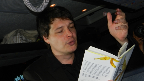 Degens gibt den kurzweiligen Gästeführer, deutet auf das IBIS-Hotel, in dem er und die Verlagsdamen untergebracht sind, direkt danach geht es an der schon legendären Ubu-Buchhandlung vorbei. „Ich habe immer gedacht, das steht einfach nur für Uni-Buchhandlung“, gesteht Degens, „erst als ich Stefan Kaminskis Lesung aus meinem Roman für den Buchtrailer gehört habe, erfuhr ich, dass man das auch französisch aussprechen kann, und dass es einen literarischen Namensgeber gibt.“