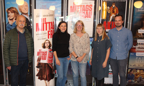 Für Barbara Albert sind die Themen von „Die Mittagsfrau“ zeitlos. „Sexualität, Geburt, Mutterschaft, aber leider auch sexuelle Gewalt haben die Geschichte der Frau schon immer geprägt“, führte die Filmemacherin am Abend weiter aus. Gleichwohl seien diese Themen in den letzten zehn Jahren verstärkt behandelt worden, vermutlich auch deswegen, weil wir „heute wieder in restriktiveren Zeiten leben“, so die Regisseurin. Im Publikum kam die Frage auf, warum sie den Film ihren beiden Großmüttern gewidmet habe. Daraufhin erläuterte Albert, dass gerade diese Generation bislang weitgehend stumm geblieben sei. Auch in der unmittelbaren Nachkriegszeit seien sie weitgehend zurückgedrängt und nicht nach ihrer Meinung gefragt worden. So hätten sich viele von ihnen auf das rein Private zurückgezogen und sich fast ausschließlich um ihre Familien gekümmert. Dieses restriktive Zurückziehen stünde nach Alberts Meinung in großem Gegensatz zur Aufgeschlossenheit und den feministischen Freiheiten, die die 1920er Jahre ausgemacht hätten. Gerade, weil diese Frauengeneration jene ausschweifenden Zeiten auch noch persönlich erlebt hatte und weil etwas Vergleichbares heute nicht noch einmal passieren dürfe, müsse man diesen Frauen nun endlich auch einmal eine Stimme geben. Einer der größten Unterschiede zur Romanvorlage liege deswegen auch darin, dass die Perspektive des verlassenen Sohnes im Film ausgeklammert worden wäre. Dies sei nach langen Diskussionen mit der Romanautorin Julia Franck entschieden worden, weil es Barbara Albert wichtig war, ihre Adaption mit der Möglichkeit einer Hoffnung zu beschließen, bei der sich Mutter und Sohn auf Augenhöhe begegnen und sich miteinander auseinandersetzen können.