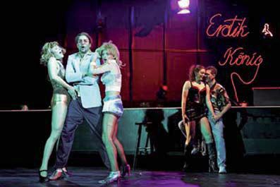 Die Sahnehäubchen auf dem innovativen Repertoire bilden aber immer wieder außergewöhnlich interpretierte Broadway-Klassiker von Gershwin („Lady be Good!“) über Rodgers („The Sound of Music“) und Sondheim („Assassins“) bis hin zu „Eigengewächsen“, die seit zehn Jahren in Kooperation mit dem Studiengang Musical/Show an der Universität der Künste entstehen. Zur Zeit steht „Kauf dir ein Kind!“ von Thomas Zaufke (Musik) und Peter Lund (Text/Regie) auf dem Programm, das ein gar nicht so zukunftsfernes Thema behandelt: Die Firma „Childlike Creatures“ stellt für 70.000 € ein Kind nach Wunsch her. So landet der 7jährige Pino (Andreas Röder) im Haus des sexuell frustrierten Paares Kristin (Juliane Dreyer) und Mark (Sebastian Smulders). Da die Firma aber auch „Vergnügungsfachkräfte“ herstellt, kommt das Rotlichtmilieu ins Spiel. Pino läuft plötzlich der falschen „Mama“ hinterher und erpresserischen Zuhältern (Lars Redlich, Francisco del Solar) in die Arme. Karolina Kubiak als Roboter-Hure, Camilla Kallfass als echte Nutte und Jeanette Claßen als Kundenbetreuerin ergänzen das spielfreudige Darsteller-Oktett. Die Rollen sind ihnen wie auf den Leib geschrieben, die mitreißende Choreographie von Neva Howard und die eingängigen Songs lassen sie ihr ganzes Musical-Talent entfalten. Und das hat eine an deutschen Musical-Bühnen wahrlich seltene tänzerische und stimmliche Qualität.