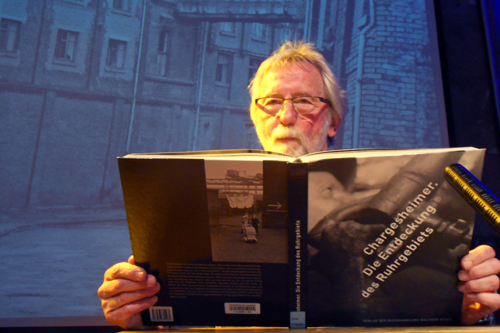 In der Regel am ersten Sonntag im Monat bietet das Lokal Harmonie in Duisburg-Ruhrort einen literarischen Leckerbissen samt Buffet auf Spendenbasis an. Mit dem Portrait „Im Ruhrgebiet“, das Nobelpreisträger Heinrich Böll 1957 verfasste, brachte der Duisburger Künstler Klaus-Dieter Brüggenwerth am 4. Juni eine historisch-literarische Rarität zu Gehör, die in dem vor 60 Jahren vom Fotografen Carl-Heinz Hargesheimer alias Chargesheimer produzierten Bildband „Im Ruhrgebiet“ zu finden ist. „Böll ist hinterher wohl nie wieder hier gewesen“, kommentiert der Vortragende einleitend.