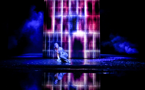 Zweiter Auftritt von Guy Montag (Uwe Schmieder) – er hatte ja schon auf dem Dach der Biedermanns gesessen. Sein Kostüm erinnert an den Truffaut-Klassiker von 1966, und auch er trifft im Regen wie Oskar Werner die blutjunge Clarisse (Bettina Lieder), die ihn mit der Frage: „Bist du glücklich?“ aus den Angeln hebt. Montag denkt, und denken ist schlecht in einer faschistoiden dystopischen Gesellschaft, die alles tut, um Denken zu verhindern, die sogar Menschen mit ihren Büchern verbrennt. Den Feuerwehrmann haut das endgültig aus den Socken. Er trug das Glück wie eine Maske, die nun abgefallen ist. Dummerweise fallen auch die anderen Klamotten. Zuhause schaut die Frau derweil Fernsehwandsoap, und die spielt unsere Familie Biedermann zentriert geistlos bis in die Realität. Was nur noch fehlt, ist die vierte Fernsehwand, dann sei das Glück perfekt, die Menschen von der Gesellschaft entkoppelt. Hört sich ziemlich zeitgenössisch an und Regisseur Kämmerer meint das augenscheinlich auch so. Wenn wie früher auch die Häuser mitbrennen, da kann der Oberbrandstifter Captain Beatty aka Josef Schmitz (natürlich Björn Gabriel) nicht weit sein. Gleiche Biografie, dieselbe Obsession, abgefackelte Opfer hier und da. Der Feuerwehrmann wandelt sich zum nackten Christus, die letzte Festung der Literatur erscheint, wo man Bücher auswendig lernt. Ob das System der Brandstifter fällt? Wer weiß das schon. Die Botschaft zählt.
