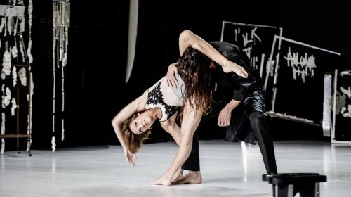 In der aktuellen Produktion der belgischen Needcompany meint man diesen Sound beständig zu vernehmen. Ventilatoren bewegen Porzellan-Objekte, die oft wie Mobilees anmuten, und ein feines Singen und Klingen oder kaltes Flirren und Klirren erfüllt den Raum. Kostümdesignerin Lot Lemm hat für die Arbeit „Forever“, die jetzt auf PACT Zollverein zu sehen war, die Ästhetik von „The Porcelain Project“ wieder aufgenommen und einen fragilen Bühnenraum geschaffen, der dem Abend auch einen skulpturalen Charakter gibt. „Forever“ ist nicht nur Tanz-Performance, sondern auch Theater-Installation.