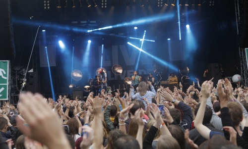 Um 20.45 Uhr stand dann ein von vielen erwartetes Highlight auf dem Programm. Jupiter Jones, gestartet als Punkband, mit ihrem Hit „Still“ in der Pop-Welt angekommen und Stammgast bei Bochum Total, spielten eines ihrer ersten Konzerte mit neuem Sänger. Nicholas Müller legte das Mikro aufgrund einer akuten Angststörung nieder. Sven Lauer, ein Freund der Band, ist seit Kurzem die neue Stimme. Jupiter Jones spielten sich quer durch alle Alben, wobei der Fokus auf dem Material der letzten, erfolgreicheren Alben lag.