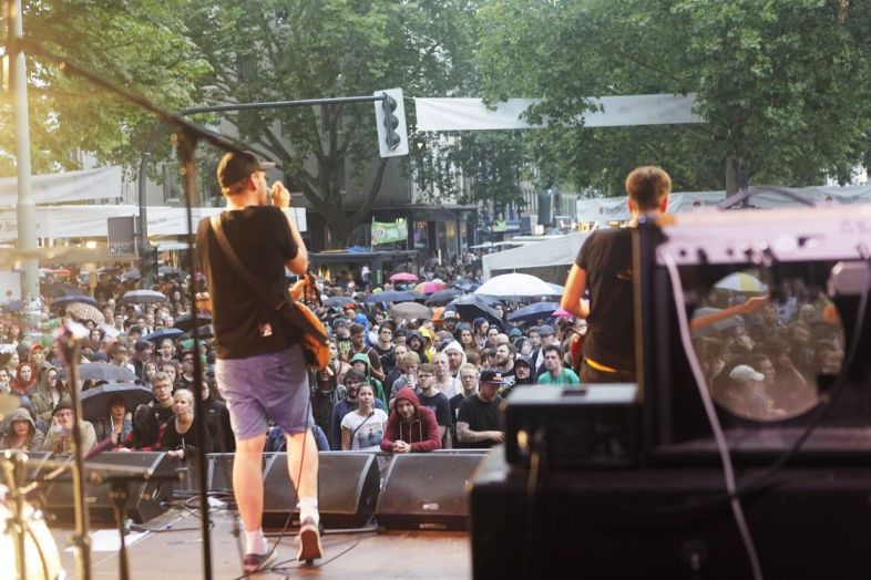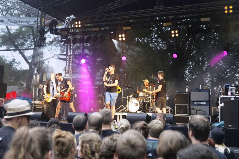 Captain Planet agierten ähnlich zurückhaltend. Auch ihnen merkte man an, dass sie aus dem Umfeld autonomer Jugendzentren stammen und große Bühnen nicht zum Alltag gehören. Ihr meist schnell vorgetragener Punkrock sorgte jedoch für mehr Bewegung vor der Bühne und mit Einsetzten des Regens schienen Band und Publikum doppelt motiviert gewesen zu sein. Mit dem passenden Titel „Land unter“ und der obligatorischen Zugabe „Baumhaus“ verabschiedeten sich Captain Planet standesgemäß.