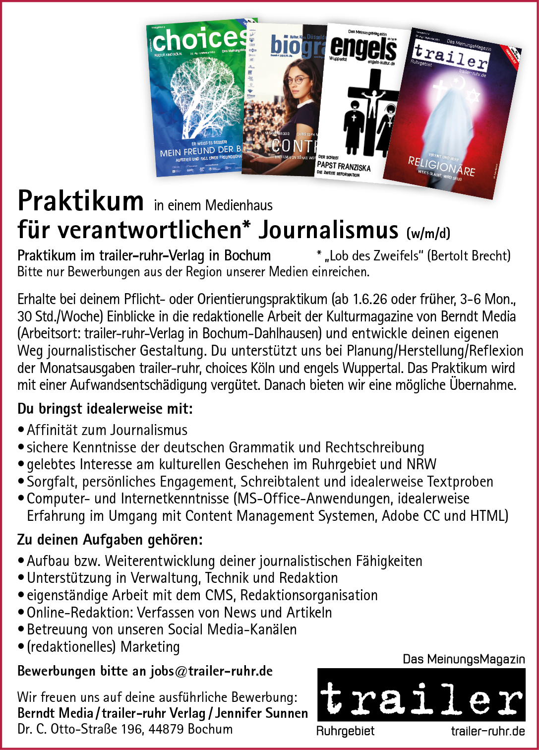 Bochum, Bonn, Castrop-Rauxel, Dortmund, Düsseldorf, Duisburg, Essen, Frechen, Gelsenkirchen, Hagen, Herne, Hürth, Köln, Leverkusen, Lünen, Mülheim, Neuss, Oberhausen, Recklinghausen, Solingen und Wuppertal