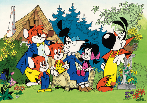 Irgendwo zwischen Marderstein und Wolfshagen liegt Fuchsholzen. Kenn ich nicht, werden einige sagen, andere schnalzen mit der Zunge. Dieser Ort liegt nicht auf der Rückseite des Mondes sondern in Deutsch-Kaukasien. Und die Gemeinde hat eine interessante Partnerstadt in US-Amerika, nämlich das berühmte Entenhausen. Aaah, die kennt man. Doch Fuchsholzen? Im Oktober 1953 treten zwei junge Füchse in Latzhosen auf die Comicbühne. Ihr Erfinder, der Zeichner Rolf Kauka (1917-2000) veröffentlichte anfangs unter dem Titel „Till Eulenspiegel“, doch Fix & Foxi, anfangs nur Nebenfiguren, werden schnell zu Stars mit eigenem Magazin. Heute sind sie Kultfiguren für mehrere Generationen und Rolf Kauka ist immer noch der deutsche Walt Disney, obwohl das ein Vergleich ist, der ziemlich hinkt. Denn viele Figuren wie Onkel Fax, der erfinderische Rabe Knox, Oma Eusebia und das kleine Lupinchen sind irgendwie auch Klone des Disney-Imperiums. Zum heimlichen Star der Geschichten wurde der verfressene und faule Wolf Lupo, doch irgendwie erinnert er immer an Mickeys Freund Goofy und den gabs ja seit 1939. Doch die Geschichten sind dem US-amerikanischen Pendant schlicht ebenbürtig.