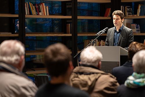 Ofer Waldman diskutierte das deutsche Demokratieverständnis in Bezug auf Israel seit dem Überfall der Hamas auf Israel am 7. Oktober 2023: „Es ist ein innerdeutsches Gespräch vor dem israelischen Spiegel“, sagte er. Solidaritätsbekundungen schienen oft oberflächlich und zielten eher darauf ab, „auf der richtigen Seite zu stehen“, betonte Waldman. „Ich kann nichts für ihre Erwartung“, betonte Waldmann in einer Fragerunde, als ein Besucher anmerkte, man dürfe das große Ganze nicht aus den Augen verlieren, es gehe um den „berühmten Kontext“.