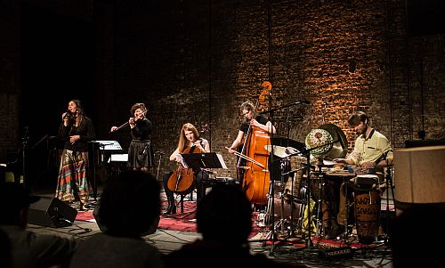Mit perkussiven Effekten auf Cello, Violine und Kontrabass beginnt die Kölner Band phase::vier ihren Auftritt: Bögen klatschen auf die Saiten, die eine oder andere Note wird gezupft. Dann gleiten Finger längs über Saiten, erzeugen ein durchgehendes Auf oder Ab. Sängerin Filippa Gojo orientiert ihren Gesang an instrumentellen Ideen: Gebundene Melodien mit starken Wechseln zwischen Laut und Leise wechseln sich ab mit abgehackten Lauten. Cellistin Elisabeth Coudoux und Violinistin Zuzana Leharová spielen zuweilen unisono in hohen Lagen, wagen sich zusammen mit dem Gesang in schrille Regionen. Auch Svenja Doeinck am Kontrabass wechselt zwischen Bogen- und Fingerspiel, stimmt in die dichten Linien der anderen ein. Antoine Duijkers begleitet die vier Frauen in erdigen Klangfarben auf seinem durch zahlreiche Handtrommeln modifizierten Schlagzeug. Die Band öffnet ein weites Assoziationsfeld: Jazz, experimentelle Klassik, Folk, Funk und Soundtrack.
