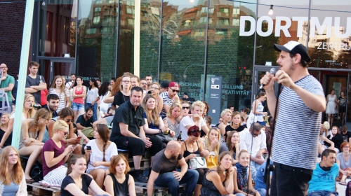 Bier, Musik und eine Bühne für bekannte Slammer und Slammerinnen: Auch in diesem Jahr ruft man mit dem bewährten Wortsport vor dem Dortmunder U zu einer Art Gegenprogramm zur aktuellen Fußball-Europameisterschaft auf. In der vierten Ausgabe von [poetry in the box] laden DSW21 Kultur zum Sommer am U erneut renommierte SlammerInnen aus dem gesamten Bundesgebiet ein: Auftreten werden unter anderem NRW-Slam-Landesmeisterin Sandra Da Vina, Kabarettist und selbsternannter Teilzeit-Nerd Tom Schildhauer oder Leonie Warnke, unter anderem Landesmeisterin Sachsen 2014. Durch den sommerlichen Abend an der wie jedes Jahr rappelvollen Leonie-Reygers-Terrasse moderiert Rainer Holl, der „Florian Silbereisen des Poetry Slams“.