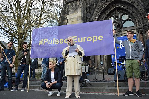 Das deutsche Epizentrum der Bewegung war bisher Frankfurt, wo der Puls von Europa das erste Mal spürbar in den Straßen schlug. Organisiert dort wurde alles über die sozialen Medien und auch während der Veranstaltung trafen sich die Menschen online unter dem Hashtag #pulseofeurope und tauschten sich aus. Darunter auch zahlreiche EU-kritische Stimmen. Auf dem Platz des Europäischen Versprechens herrscht dagegen Einigkeit. Eine Menschenkette, Live-Musik und das gemeinsame Singen der europäischen Hymne lassen ein Gemeinschaftsgefühl unter den Teilnehmern entstehen.