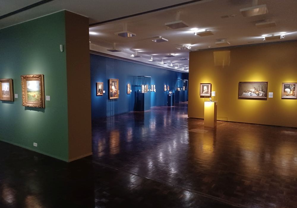 Oben, in der Dauerausstellung mit ihren eingezogenen Ebenen unter der großen Kuppel, sieht es jetzt echt kümmerlich aus. Viele Gemälde sind abgehängt, Vitrinen leergeräumt. Die Wände sind als eingezogene billige Konstruktionen sichtbar – kurios, dass die Sonderausstellung im Erdgeschoss in ihrem abschließenden Wandtext doch gerade zum Besuch dieser oberen Räume auffordert. Unter dem etwas verdächtig klingenden Titel „Remix. 800 Jahre Kunst entdecken“ sind bis auf weiteres die wichtigen, wenngleich oft eher unbekannten Gemälde und Skulpturen vom Mittelalter bis zum Jugendstil gemeinsam in linear chronologischer Abfolge zu sehen. An Stelle des bisherigen kulturhistorischen Kontextes tritt der kunsthistorische Dialog.