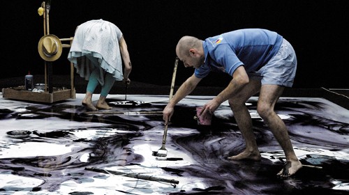 In Köln gastiert die FFT-Produktion „Halt dich am Zaun, der Himmel ist hoch“, ein Stück der Regisseurin und Autorin Anna Malunat. Sie ist mit Heimatvertriebenen ins Gebiet um Kaliningrad gereist, hat Interviews gemacht und O-Töne gesammelt und daraus mit ihrem Ensemble ein Stück entwickelt, das sich von Verklärung, Revanchismus und Erika-Steinbach-Debatten fernhält. Katharina Meves und Theo Plakoudakis malen mit Pinseln eine Landschaft auf den Bühnenboden und lassen ein Arsenal an Geschichten, Erinnerungen, Begegnungen, aber auch Märchen entstehen, die von Kornelius Heidebrecht musikalisch begleitet werden. Ein poetisch-zarter Versuch, sich dem verminten Thema zu nähern, ohne sich anzubiedern.