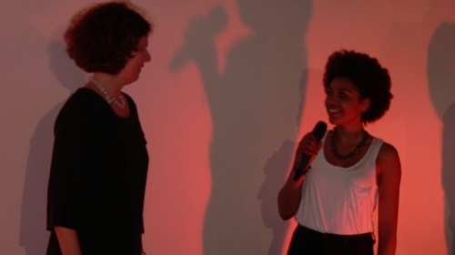 Kaddi übernimmt den Preis von Kuratorin/Moderatorin Hilke Doering. Foto: Maxi Braun