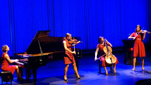 Auf der Bühne steht ein Weihnachtsbaum, die Vorhänge sind in warmen Farben beleuchtet und Salut Salon treten in eleganten rot-goldenen Kleidern auf die Bühne. Bereits ohne die Musik des Hamburger Quartetts herrscht weihnachtliche Stimmung im beinahe ausverkauften Saal des Konzerthauses Dortmund. Kein Wunder, denn Angelika Bachmann, Iris Siegfried, Anne-Monika von Twardowski und Sonja Lena Schmid treten hier mit ihrem Weihnachtsprogramm „Die Nacht des Schicksals“ auf. Salut Salon, obwohl mit ausschließlich klassischen Instrumenten ausgestattet, beschränken sich nicht auf klassische Stücke, sondern arrangieren auch Pop- und Filmmusik, Tango, Chansons und Folk. Und wenn es dann doch einmal an Bach, Brahms und Schumann geht, wird die besonders bei jungen Hörern häufig wenig geschätzte Musik nicht einfach gespielt, sondern modern interpretiert.