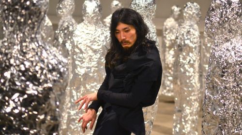 So blieb es den weiteren ausgewählten Choreografen vorbehalten, doch noch Pluspunkte für das Festival zu sammeln. Zwei sind zu erwähnen, die sich trotz ganz unterschiedlicher Vorgehensweise beide mit der Frage von äußerem Schein und innerer Befindlichkeit befassen. Dank einer Residenz bei PACT Zollverein wurde das hessische Duo Verena Billinger/Sebastian Schulz ins NRW-Festival geschummelt. Ein Glücksfall, denn ihre Tanzperformance „First life“ nimmt das im Tanz so beliebte Thema Beziehung ironisch aufs Korn. Nackt kommen beide auf die Bühne, ziehen sich an, agieren bewegungsreduziert, ziehen sich wieder aus und gehen nackt. Das Äußere wird zur Metapher der Innerlichkeit, die skurrile Nüchternheit des Umgangs zum Sinnbild für die unerfüllbare Sehnsucht nach Liebe. Wo bei Billinger/Schulz die Bühne nackt und leer ist, hängt sie in „Exuviae“ von der Kölner Choreografin Yoshie Shibahara voller Figurinen aus Alufolie. In diesem grandiosen Bühnenbild bewegt sich ein Butoh-Tänzer in stiller Selbstbezogenheit, während Shibahara als pedantische Museumswärterin über die Figurinen wacht und eine schon mal plattbügelt: Die äußere Hülle (Exuviae) ist halt kein Wert an und für sich. Beide Choreografinnen arbeiten mit einer Ästhetik der Form, die auch für den Umgang mit ihren inhaltlichen Anliegen steht. Cool und distanziert, leichthändig und voll tiefgründigem Humor thematisieren sie Existenzfragen.