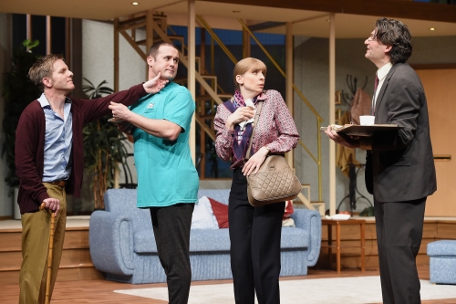 Regisseur Tobias Materna inszeniert Michael Cooney Stück als das, was sie ist: eine Boulevardkomödie am Rande der Farce. Auf Till Kühnerts Bühne, die ein aufgeschnittenes Haus mit Wohnzimmer, Galerie und Dach zeigt, perlen die Dialoge im rasanten Tempo. Jede neue Bemerkung schafft neue Verwicklungen. Die Türen fliegen im Minutentakt auf und knallen wieder zu. Doch die Regie fordert dem Ensemble, das mit sichtbarer Lust am Werk ist, auch körperlich alles ab. Lange nicht mehr hat man Schauspieler derart ungeniert fallen, aufprallen oder hinsegeln sehen. Die Regie begeht nicht den Fehler, das Chaos bis in den Wahnsinn zu steigern. Gerade weil Stefan Diekmann als Eric jede noch so absurde Volte mit trockener Pragmatik präsentiert und ihre faktischen Folgen durchinszeniert, steht der Abend immer wieder kurz vor der Explosion, findet aber doch noch eine weitere Schraubendrehung in die Groteske. Neunzig Minuten beste Unterhaltung, mehr kann man nicht verlangen.
