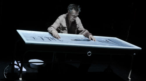 Woyzeck selbst ist keineswegs ein Getriebener, eher ein Grübler, ein Nachdenkender, dem das Spiel mit seinem Sohn oder die Liebessehnsucht der Marie schnell zu viel wird. Sinnierend schlitzt er einen Fisch an einem Seziertisch auf, und als plötzlich Marie darauf liegt, setzt er auch bei ihr das Messer an. Gerade sie aber scheint das eigentliche Opfer: Die Marie der Dagmar Geppert im schwarzen Dirndl unterwirft sich Woyzeck wie dem Tambourmajor und stirbt gleich dreimal: erst vom Titelhelden seziert, dann von ihm erstochen und schließlich vom Orchester zu Tode vergewaltigt. Der Tod ist hier ein ständiger Begleiter der Figuren – und zwar in Gestalt der Großmutter. Volker Roos spielt sie als Schnitter im Anzug mit dunkel umrandeten Augen, der herumstreicht („Ich rieche Menschenfleisch“), Woyzeck henkt und schließlich das berühmte Märchen vom kleinen Jungen erzählt. Am liebsten hält er sich allerdings neben einem strahlenden Eisblock auf, der über einem Fass mit Wasser hängt. Sein Stundenglas, das sind hier die Tropfen, die herabfallen („Die Zeit ist ein Menschenfresser“). Wenn die Zeit des Titelhelden abgelaufen ist, stürzt der Eisblock vom Haken – dem Tod geweiht war Woyzeck schon vorher.