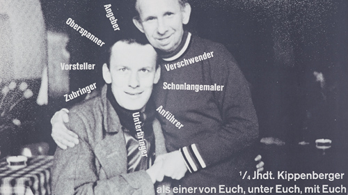 Das konnte einem mit Martin Kippenberger passieren: Dass er einen Katalog, den er signieren sollte, erst an seinen zufällig anwesenden Vater zum Unterschreiben weiterreichte und dann dessen Signatur textlich kommentierte und monogrammierte. Kippenberger (1953-97) war kombinatorisch messerscharf. Gepaart mit viel Gesellschafts- und Kulturreflexion zieht sich das durch seine Malerei, Skulptur, Installation, Performance, Zeichnung, Fotografie … Aber wo bleibt dabei die Kunst? Die Frage stellt sich jetzt im Deutschen Plakatmuseum im Museum Folkwang. Dort ist ein Überblick über Kippenbergers selbst geschaffene Plakate zu seinen Einzel- und Gruppenausstellungen zu sehen.
