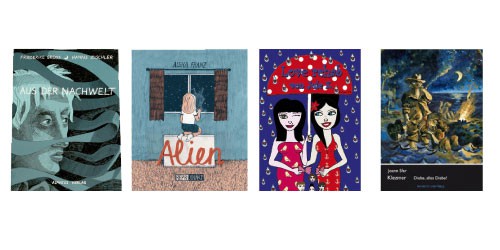 Hanns Zischler kennt man seit Jahrzehnten als Schauspieler. Dass er 1968 den Alpheus Verlag gründete, den er vor einigen Jahren reaktivierte, ist weniger bekannt. Nun tritt er auch als Autor eines Comics auf: „Aus der Nachwelt“, dynamisch und grob straffiert illustriert von Friederike Gross, erzählt von einem erfolglosen Maler, dem Besuch aus der Zukunft ins Haus steht. Und der erzählt ihm von seiner großen, posthumen Retrospektive. Nicht nur ist die Zeitreise stimmungsvoll erzählt, auch die Zeichnungen begeistern mit einigen raffinierten Momenten, so zum Beispiel der Visualisierung von Musik (Alpheus Verlag).