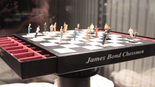 Ein Großteil der 500 Exponate, die nun zusätzlich bei „Top Secret“ zu sehen sind, stammt aus der Privatsammlung des James-Bond-Fans Jürgen Hinz. Dessen Leidenschaft begann im Alter von sechs oder sieben Jahren, als er ein kleines James-Bond-Modellauto geschenkt bekam. Vor 20 Jahren professionalisierte der heute 50-Jährige seine Sammelleidenschaft und hat es inzwischen auf rund 700 Einzelstücke gebracht, von denen ein Großteil in der Ausstellung in 25 Vitrinen bewundert werden kann. Neben einem Bond-Schachbrett mit handbemalten Figuren aus den Filmen finden sich hier auch etliche von Hinz persönlich gesammelte Autogramme der Darsteller, der Übungshut des „Goldfinger“-Schurken Oddjobb oder die goldene Pistole aus „Der Mann mit dem goldenen Colt“. Jürgen Hinz findet vor allem James Bond als Figur interessant, liebt die tollen Autos und das Exotische der Geschichten, die sich zudem fortlaufend über mehrere Filme hinweg erstrecken. Vielen dürfte es ähnlich gehen, weswegen man jedem Bond-Fan die Ausstellung in Oberhausen nur wärmstens empfehlen kann.