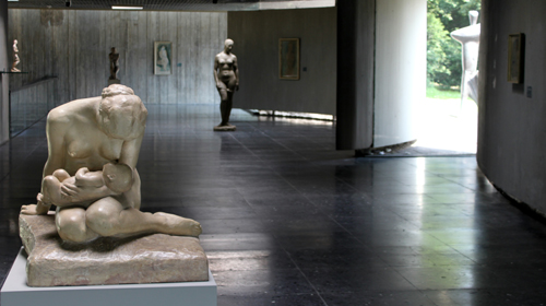 Auch der Lehmbruck-Flügel, 1964 gebaut vom Sohn von Wilhelm Lehmbruck, wirkt leer, nüchtern. Aber hier steckt ein tieferes Konzept dahinter, und wir sehen die Rekonstruktion der damaligen Eröffnungsausstellung. Lehmbrucks Hauptwerke sind hier im Übrigen sämtlich ausgestellt.
