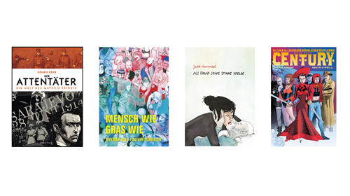 In diesem Jahr wurde allerorten dem Ausbruch des Ersten Weltkriegs im Jahr 1914 gedacht. Im Juni geschah das auch auf dem Comicsalon in Erlangen – exemplarisch an Neuerscheinungen von Jacques Tardi und Joe Sacco, die beide angereist waren. Nun erscheint mit Henrik Rehrs prämierter Graphic Novel „Der Attentäter – Die Welt des Gavrilo Princip“ eine Biografie des Mörders von Franz Ferdinand und damit des Hintergrundes der sogenannten Julikrise, die direkt in den Ersten Weltkrieg mündete. Rehrs in bemerkenswerten, beinahe stichartigen Zeichnungen illustrierte Biografie umkreist die politischen Hintergründe anschaulich und liefert zugleich einen allgemeinen Blick in das Entstehen von Terrorismus. Der Journalist und Schriftsteller Dietmar Dath hat gemeinsam mit dem Illustrator Oliver Scheibler den Comic „Mensch wie Gras wie“ vorgelegt. Die Geschichte erzählt von der Biologin Elin, die an Genmanipulationen arbeitet und nicht nur im Beruf moralisch hin und her gerissen ist, sondern auch privat zwischen allen Stühlen sitzt. Arbeit, Politik und Liebe durchwirken die teils konkret, teils assoziativ bebilderte Geschichte, ohne dass Intellekt und Emotion gegeneinander ausgespielt würden. Das demonstriert auch Daths Nachwort im Anhang (Verbrecher Verlag). David hat Krebs. Damit muss er erst mal zurechtkommen. Aber auch seine Frau Paula, seine kleine Tochter Tamar und seine erwachsene Tochter Miriam aus erster Ehe müssen ihren Umgang mit Davids Krankheit finden. Judith Vanistendael erzählt ihre berührende Familiengeschichte „Als David seine Stimme verlor“ zwar auch mit Dialog, aber tatsächlich erzählen die Bilder nicht nur in den vielen wortlosen Passagen einen Großteil der Geschichte, sondern sind auch in den dialoglastigeren Momenten sehr vielsagend und ergreifend (Reprodukt).