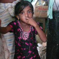 Die Flüchtlinge leben unter einfachsten Bedingungen in den improvisierten Lagern. Dieser Angehörige der hinduistischen Minderheit besitzt einige Küchenutensilien, Lebensmittel und eine Schlafmatte. |