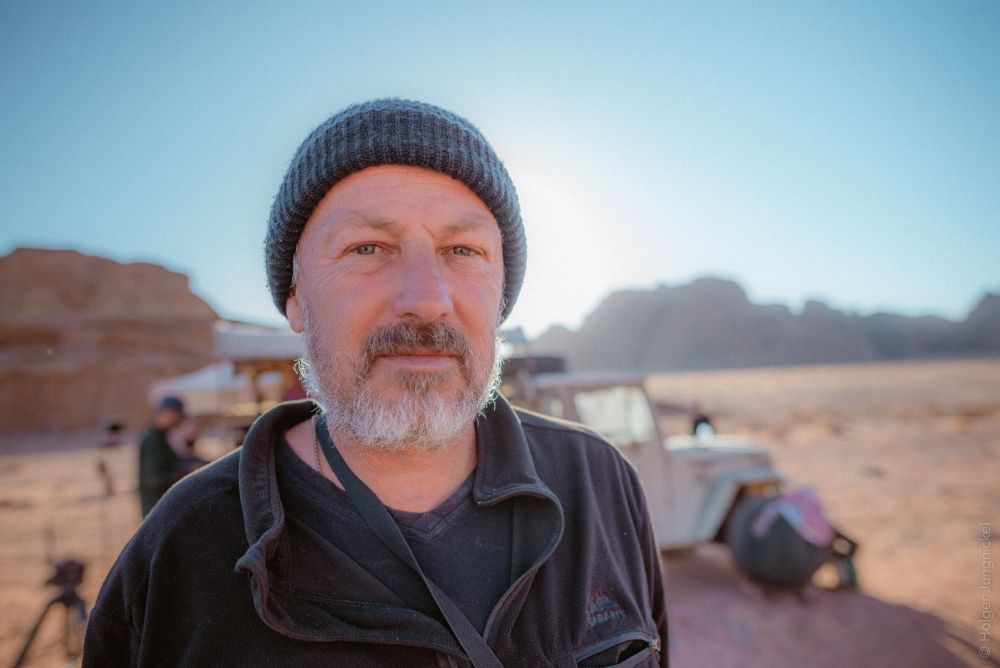 Jein, ich kannte Wadi Rum schon von früher, nicht nur aus „Lawrence von Arabien“, sondern weil ich früher schon einmal dort gewesen war. Wir wollten ursprünglich in der Wüste Sinai drehen, in der wir auch das Buch geschrieben hatten. Aber das funktionierte nicht aufgrund der ägyptischen Zensur, denn jegliche Produktionen, die mit Juden oder Israel zu tun haben, haben es dort nicht leicht oder werden regelrecht verhindert. Deswegen mussten wir Sinai canceln. Eine Landschaft, die ähnlich aussieht, befindet sich gegenüber auf der anderen Seite des Roten Meeres in Jordanien, das Wadi Rum. Da der Dreh dort teurer war, wurde das ohnehin bescheidene Budget weiter belastet, aber es hat sich wirklich gelohnt, weil die Wüste im Film quasi als ein dritter Charakter funktioniert. Denn die Wüste war als Gotteserfahrung oder als existenzielle Erfahrung, wenn man dort auf sich selbst zurückgeworfen ist und auf ganz andere Gedanken kommt, für den Film sehr wichtig.
