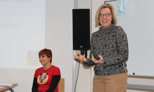 Im weiteren Verlauf analysierte die Journalistin die Gewichtung von männlichen und weiblichen Protagonisten genauer. Dabei zeigte sich, dass selbst im Kinderfernsehen überwiegend männliche Rollenmodelle vorkommen, auch bei Fantasiefiguren („Sesamstraße“) sind diese in den seltensten Fällen weiblich. Da Mädchen in den Medien nicht entsprechend porträtiert würden, hätten sie auch deutlich geringere Entfaltungsmöglichkeiten als ihre männlichen Altersgenossen, ergänzte Rieger. Diese Tendenzen zeigen sich in ähnlicher Form auch in Medieninhalten für Erwachsene, da in zahlreichen westlichen Mainstreamfilmen der Anteil der Dialogzeilen von Frauen stark hinter dem von Männern zurückbleibt und Frauen häufig durch den „male gaze“ inszeniert werden, den männlichen Blick, der in ihnen lediglich Sexualobjekte sieht. In ihrem rund vierstündigen Workshop fand Sophie Charlotte Rieger auch noch Zeit, Spezialfälle vorzustellen. Unter „niedlicher Misogynie“ beispielsweise versteht man das sexistische, frauenfeindliche Verhalten von Filmfiguren (hier am Beispiel von Charakteren aus „The Big Bang Theory“ visualisiert), das durch deren allgemein als niedlich klassifiziertem Auftreten gerechtfertigt wird und der Unterhaltung dient. Zum Abschluss ließ die Referentin die TeilnehmerInnen noch selbst einen Test für sich entwickeln, mit dem diese sicherstellen können, bei ihren künftigen Arbeiten auf unbewusste Kategorisierungen zu verzichten.