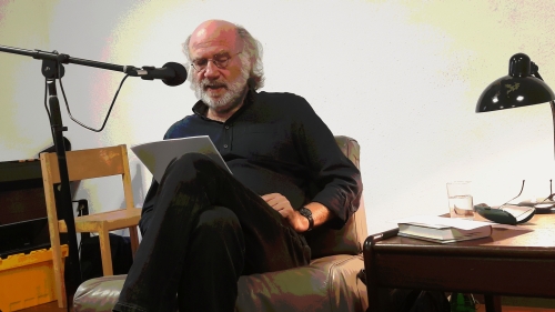 Hartmut Kowsky-Kawelke, Gastgeber und Moderator des Abends, erzählt zunächst, wie er beim Besuch eines belesenen Hamburger Freundes in dessen Regal auf ein Buch des reißerischen Titels „Onno Viets und der Irre vom Kiez“ gestoßen und kurz darauf vom Onno Viets-Fieber befallen worden sei. Die Trilogie um den antriebslosen Privatdetektiv hat dem Autor den Kasseler Literaturpreis für grotesken Humor eingebracht. In seinem jüngst erschienenen Erzählband „Anmut und Feigheit“ jedoch, der im Zentrum der Lesung steht, schlägt Schulz auch nachdenkliche, wehmütige Töne an. In den „Szenen in Beige“, mit denen Schulz die Lesung startet, lässt Schulz altbewährt Witz und höchste Formulierungskunst aufblitzen. Das Publikum lässt sich von seinem norddeutschen Zungenschlag in den Bann ziehen und begleitet so den Kulturamtsmitarbeiter Kortsch, der kürzlich seinen 60. Geburtstag begangen und somit die Schwelle zum „Juniorsenior“ – in Abgrenzung zu den wirklich alten Leuten, den Seniorsenioren – überschritten hat. Frotzeleien mit seiner „Betreuerin“ titulierten, weitaus jüngeren Lebensgefährtin, reizen zum Lachen, doch bereits in dieser Geschichte lauert unter Wortwitz und Situationskomik ein Anflug von Vergänglichkeit.
