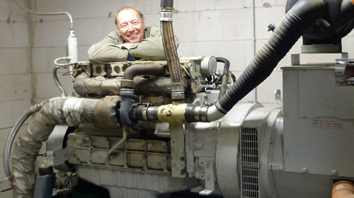 Ein Blockheizkraftwerk auf Holzgas-Basis versorgt den Hof von Alfons Kuhles… demnächst mit Biokohle