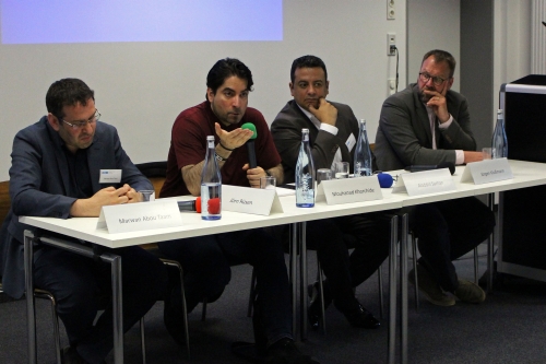 Da auf dem Podium keine Gegner der Positionen der MFD vertreten waren und die Veranstaltung insgesamt in kleiner Runde stattfand, verlief die anschließende Podiumsdiskussion wenig kontrovers. Auf die Frage aus dem Plenum, warum die islamische Welt in den Bereichen Kultur, Bildung, Wirtschaft und Politik in den vergangenen Jahren 800 Jahren keine wesentlichen Beitrag mehr zur Entwicklung der Welt geleistet habe, verwies Jörgen Klußmann darauf, dass es nicht „den Islam“ gebe, wohl aber einer sehr dominante konservative Auslegung, vor allem im sunnitischen Islam. „Gottseidank haben wir progressive Strömungen wie das MFD, die sich ganz konkret Gedanken über den Anschluss an die Moderne machen“, betonte der Studienleiter an der Evangelischen Akademie im Rheinland und Islamwissenschaftler, der die Veranstaltung mit einem Vortrag zum Friedenspotenzial monotheistischer Religionen eingeleitet hatte.