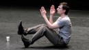 Mit zwei Gläsern Milch markiert Raimund Hoghe die Fläche, auf der sich das Geschehen der Choreographie „L'après-midi“ abspielt. Mit dem gesammelten Ernst eines Zen-Meisters verengt oder erweitert er die Positionen auf der Bühne.