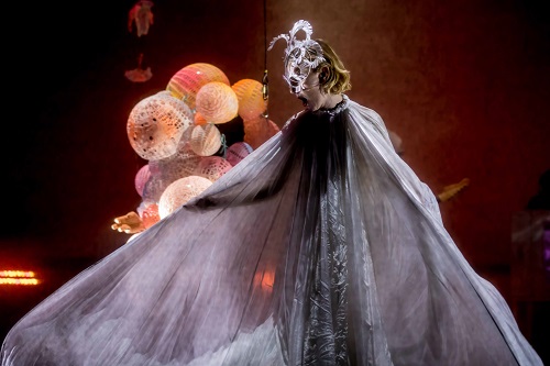 Diese Mensch-Tier-Verwandlungen – von Kafka bis George Langelaan eher eine Chiffre für das Unheimliche, Absurde oder eine Hybris – inszeniert Farn als befreienden Wurf, als Erlösung von der menschlichen Gewalt- und Ausbeutungsgeschichte. So trifft es sogar das Klavier, ein Instrument der Kultivierung und Sublimierung, das Michael Graessner lieber dezent schlachtet, statt darauf zu spielen. Vielleicht sei es besser, einer tierischen Poetik ohne Sprache, einer nicht-kommunikativen Ästhetik des Vegetativen zu lauschen, über die Christoph Müller später ausgiebig monologisiert, während sich alle um ein kleines Lagerfeuer versammeln. Und Sandra Hüller schlüpft kurz darauf in das Kostüm (entworfen von Kathi Maurer) der Camille, eine fiktive Hybridfigur von Haraway und schlägt stolz die Flügel: als Menschen-Schmetterling.
