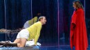 Die Welt, in der Othello seinen Platz behaupten muss, ist klein, sie ist eine kleine weiße Kiste, in der sich Ungeheuerliches abspielt, in der die Mächtigen Venedigs genauso wie die Liebenden und Intriganten ihr Dasein fristen müssen. Manchmal brechen sie daraus hervor, doch dann scheint die Welt aus den Fugen zu geraten.