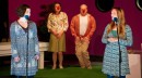 In der Mitte der Bühne von Kathrin Frosch befindet sich ein großes Loch, es ist gleichzeitig Gefängnis und Sehnsuchtsort, der Rest der Landschaft mit Schräglage ist kalt und ungemütlich.