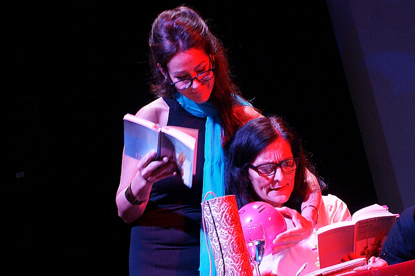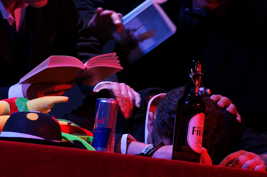 Kunst kommt nicht nur von Können – es gehört auch Mut dazu. Zum Beispiel den Mut, ein lange Zeit als nie und nimmer inszenierbares Stück in seiner vollen Länge auf die Bühne zu bringen. Zwar nicht als durchinszeniertes Stück, sondern als Lesung, aber mit 12 Stunden Spielzeit – mit auf 13 Mitstreitern verteilten Rollen und ohne eine einzige Probe. In der Nacht vom 2. auf den 3. Oktober rief Arne Nobel, Ausnaheme-Theatermacher und Gründer des Rottstr5-Theaters die B-Bande-Tafelrunde ins Zeitmaul-Theater, um gemeinsam Tankred Dorsts monumentales Artus-Stück „Merlin oder Das wüste Land" zu lesen.