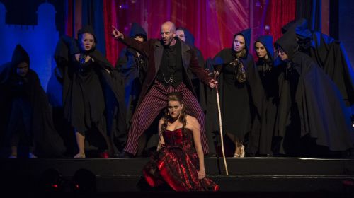 Die am Ende des 18. Jahrhunderts spielende Geschichte um Dr. Frankenstein, der aus Leichenteilen einen künstlichen Menschen kreiert und damit ein mordendes Monster erschafft, bietet durchaus schaurig-spannendes Entertainment. Leider lässt die Regie von Stefan Haberkorn, der auch die Titelrolle übernommen hat, im ersten Akt die Zügel etwas schleifen, was teilweise zu Textunverständlichkeiten führt, die nicht nur an der technisch unzureichenden Micro-Port-Anlage liegen. Im zweiten Akt wird die Inszenierung dann dichter, hat er das engagierte Ensemble besser im Griff. Barons Songs schleichen sich musikalisch immer mehr ins Ohr, auch wenn die Reim-Lyrik der deutschen Übersetzerin Vera Domik manchen Stolperstein in den Gehörgang legt. Störender ist da nur, dass man zwar die Hinterköpfe der Darsteller anstrahlt, ihre Gesichter aber im Dunkeln lässt. So mussten sie sich über ihre durchaus passablen Sing-Stimmen definieren, unterstützt von einem enthusiastisch aufspielenden, 17köpfigen Live-Orchester unter dem dynamischen Dirigat von Stephan Langenberg.